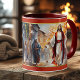 Mug apresentando uma pintura de Jesus Cristo e sua mensagem de amor, paz e alegria. As pessoas ao seu redor ainda são céticas. A mensagem dele vai chegar aos corações deles? Esta caneca é bonita para quem ama o Cristo, seja ela católica ou, em geral, espiritualmente interessada. Para o Natal ou qualquer outro dia do ano.