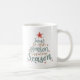 Esta caneca mostra a mensagem Jesus é o motivo da temporada moldada como uma árvore de Natal com uma estrela no topo, em uma letra de script com cores vermelho, verde e dourado de Natal sem som.