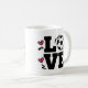 Uma linda caneca de café de futebol para meninas e mulheres, com o AMOR em texto ousado e um gráfico de bola de futebol no lugar do O, cercado por corações. Faz um presente de excelente para qualquer jogador de futebol ou fã, especialmente para garotas e mulheres.