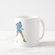 Um jogador de futebol de azul chutando uma bola. Esta design parece realmente eficaz nestas Mug