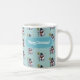 A jolly snowman on a Christmas mug. Use "Personalize this template" to change the "Merry Christmas!" text and create a unique, customized gift; text changes are reflected on both sides. Enjoy a warming hot chocolate at Christmas in this mug, featuring a busy repeat of a jolly snowman. Drawn in a retro, pixel art style, a traditional snowman with top hat and broom, coal eyes and buttons, a carrot nose and a stripy scarf.