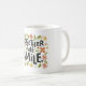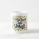 "Juntos sorrimos" num vibrante gradiente arco-íris. Cada palavra passa suavemente de uma cor para a outra, criando um olhar alegre e otimista.A imagem que você carregou mostra uma caneca com a frase "JUNTOS NÓS SORRIMOS" cercada por flores e folhas coloridas. Isto pode ser uma ideia de presente de excelente ou um símbolo de positividade e trabalho em equipe.