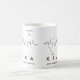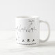 Kiara soletrava em aminoácidos como K I A R A (Lysine Isoleucine Alanine Arginine Alanine) numa caneca para o cientista em si.