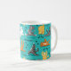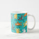 Divirta-se bebendo sua bebida desta caneca com gatos em várias poses de ioga como "gato descendente" "Guerreiro Tomcat" com esta arte original engraçada e chorosa de Phyllis Dobbs. O fundo é azul-turquesa com gatinhos pretos, brancos, laranja, tabby e amarelos. Palavras humorísticas dizem ao gato que o yoga posou. Este design também está disponível com fundo vermelho.