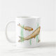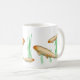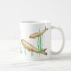 Isto projetou simplesmente as características da caneca coloridas delicada alaranjadas e a natação branca dos peixes do koi através de um mar da grama.