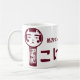 This is a logo mark design for a pharmacy that uses a cute, traditional Japanese doll, a "kokeshi," as its symbol character.