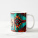 Este é um "Um dos tipos" único da Mug de Café do Sudoeste de Kokopelli! Ele apresenta um dois Kokopelli sudoeste tocando flauta e dançando sob o sol num fundo de turquesa e sunset laranja... cercado por uma borda sudoeste em Turquesa, Laranja e Preto! Design De Arte Original Pelo Artista Kerry Miller.