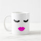 Este design simples e giro apresenta pestanas e lábios cor-de-rosa brilhantes para saudá-lo de manhã. O presente perfeito para um esteticista ou amante da maquiagem.