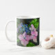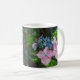Esta caneca apresenta a bonito lacecap hydrangea. Excelente para jardineiros ou apenas para aqueles que apreciam flores. Bom aniversário ou presente de anfitriã.