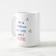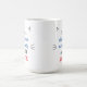 "Sou uma gata sem filhos e VOTO", caneca, com ouvidos de gato e bigode. Branco, azul, vermelho e preto. O mesmo design de ambos os lados.