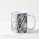 Lã branca da Flor Clematis - Esta caneca serena apresenta uma fotografia de fecho espantosa de uma flor branca Clematis armandii contra um céu azul. As delicadas flores de cinco petalhas são mostradas em detalhes complexos, destacando a beleza natural dessa videira lenhosa. A imagem captura a essência tranquila da natureza, fazer uma maneira adorável de cumprimentar o dia com uma xícara de sua bebida favorita.