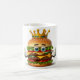 "Burger Lover's Brew" A caneca é impressa com camadas de hambúrguer: pão, alface, tomate, queijo e patty.