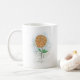 Mug de café com flor de marigold laranja de cor-d-água em um estilo de rabisco na frente, com "esperança" escrita abaixo em letra suave (pode ser mudada para palavra ou nome da sua escolha). Bem amada Escritura de Corinthians 13:13 do outro lado.