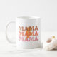 Esta é uma caneca de café colorida e nostálgica com as palavras "Mamãe Mama" escrita em laranja e rosa. Seria um presente excelente para Dia de as mães ou qualquer ocasião para mostrar apreço por uma mãe especial. O design retro adiciona um toque de charme de vintagem à caneca, fazer-a de uma ideia única e ponderada de presente. É perfeito para desfrutar de uma xícara de café ou chá quente e certamente colocaria um sorriso no rosto de qualquer mãe.