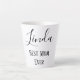 Um design clássico, esta caneca latta mostra o nome da mãe com "Melhor Mãe Nunca" escrito por baixo, com uma linda fonte preta. Todo texto está em caracteres pretos, mas pode ser personalizado. O tamanho, a cor e o tipo da fonte podem ser alterados. Personalize o seu hoje!