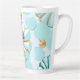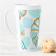Uma pintura a óleo pastel macio de um padrão de cores azul-claro e metálicas com ouro e abóboras verdes. O fundo é uma parede branca. Há ouros e abóboras verdes espalhadas pelo padrão. A imagem geral tem uma aparência de pinceladas levemente limpa.