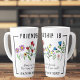 Uma caneca de café celebrando a Amizade! Amizade é lealdade, confiança, honestidade, e respeito com a citação "flores são como amigos, elas trazem cor para o seu mundo." Este belo grupo de flores silvestres nesta caneca de café celebra a beleza da amizade e faz um presente de excelente.