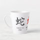 Moderno Ano Novo Chinês Lunar do Nome Personalizado da COBRA Latte Mug com TEXTO PERSONALIZÁVEL, projetado em três lados com o símbolo lunar zodíaco chinês para os quadrados COBRA de quadrados das cores populares preto, vermelho e amarelo. Há três TEXTOS PERSONALIZÁVEIS, onde você pode adicionar seu nome, sua saudação (por exemplo, Parabéns) ou criar seu próprio texto. Este Ano da caneca-COBRA faria uma adição de excelente à sua coleção de caneca zodíaca chinesa, e pode ser dada para aniversários e Natal, assim como presentes de Ano Novo. Escolha entre uma ampla seleção de designs de Ano Novo Chinês Lunar para cada sinal do Zodíaco Chinês em cartas, decoração doméstica, roupas e presentes, desenhados por Designs Bereanos.
