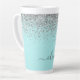 Caneca De Café Latte Aqua Azul Verde Prateado Brilho Monograma