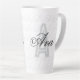 This latte mug features a background pattern made with the initial "A" and a striking palette of black, white, and grey. Give the gift of a unique typography custom name latte mug that shines a spotlight on "Ava."