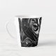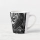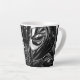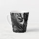 Glossy black chrome abstract woman profile wrapping around a ceramic mug, modern metallic art coffee cup for stylish gift.