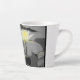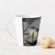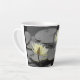 Esta imagem fora do quadro apresenta dois lírios de água delicados em matizes macios, amarelo-pálidos, destacando-se claramente contra um pano de fundo de almofadas, lírios cinza e água. As flores estendem-se para além do quadro delimitado por preto, criando um efeito dinâmico, quase tridimensional. O contraste entre os florescentes vibrantes e os subjugados arredores destaca a delicada beleza e tranquilidade da cena, evocando um senso de calma e elegância silenciosa.