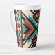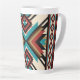 A Southwestern-inspired geometric pattern featuring striking diamond and chevron shapes in turquoise, deep red, black, and warm neutral tones. This symmetrical design draws inspiration from bohemian textiles, creating a timeless yet modern look.