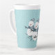 Uma adorável trio de bonecos brancos de neve em um padrão de bolinhas azul claro cria uma caneca de café festiva para todos. Personalizar com nome ou outra mensagem personalizada.