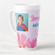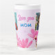 Bonita Amo-te Mãe Flores Rosa 2 Fotos Latte Mug. Flores cor-de-rosa sobre fundo rosa esbranquiçado e 2 fotos. Crie uma caneca personalizada para uma mãe para o Dia das Mães, aniversário ou Natal e adicione suas fotos.