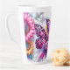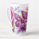 Esta vibrante design de caneca latta apresenta uma impressionante variedade de borboletas coloridas e girassóis. O foco central é uma borboleta grande, rosa, com manchas pretas e brancas, graciosamente empobrecida num girassol rosa florescente. Ao redor dele estão mais girassóis em tons de amarelo e laranja, junto com flores cor-de-rosa menores, todos colocados contra um fundo sonhador e marmoreado com salpicos de azul e rosa. Esta design encantadora e animada traz um toque da beleza da natureza aos seus momentos de café, fazer cada gota de uma experiência encantadora.