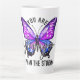 Esta vibrante caneca latta apresenta uma espantosa borboleta com asas adornadas em tons de roxo, rosa e azul. Os intrincados padrões e sotaques espumantes nas asas acrescentam um toque de elegância e de capricho. A palavra "Mais Forte" é escrita ousadamente através da borboleta, simbolizando a resiliência e o empoderamento. Esta caneca é perfeita para aqueles que apreciam beleza e força em sua rotina diária.