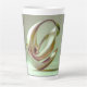 Um design abstrato simples mas elegante em verde claro cobre esta caneca de latte única.