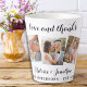 Adicione o toque final ao seu casamento com estas canecas de fotos personalizadas e divertidas. Perfeito como favores de casamento para todos os seus convidados. Personalize esses favores de casamento com sua foto favorita de casamento, sua nova foto e personalize com nome e data. Veja nossa coleção de casamento para combinar favores de casamento, presentes recém-casados e guardas de recem casados. COPYRIGHT © 2020 Judy Burrows, Black Dog Art - Todos Os Direitos Reservados. Obrigados e amor elegante 3 Foto Noiva de Casamento Latte Mug