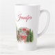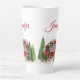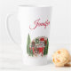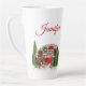 Uma caneca latta com um tema de Natal bonito e caprichoso. Um trailer aconchegante decorado para o sorteio de Natal entre alguns pinheiros. Personalizar com um nome ou outro texto.