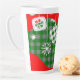 Available in 12 oz (small) and 17 oz (large) sizes, this ceramic mug is microwave and dishwasher safe. Its tall, curved shape is ideal for lattes, cappuccinos, or hot cocoa, combining practicality with seasonal charm.