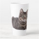 Retrato de um gato-do-cinza-riscado sentado sobre um fundo branco