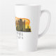 A caneca de na moda latte apresenta silhueta de linha do horizonte da cidade de Filadélfia, Pensilvânia, com fundo de escala de cor d'água do pôr do sol e coordenadas de mapa de latitude e longitude.