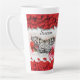 Caneca De Café Latte Corações Vermelhos e Borboleta Aquarela