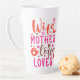 Esposa Mãe Café Lover texto com corações, folhas de café e uma xícara de café.