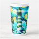 Caneca De Café Latte Farol tropical e Palmeiras Verdes