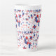 Feliz 4 de julho de Red Blue Cute Party Latte Mug azul, fogos de artifício vermelhos e brancos e exibição de bandeira americana em um fundo azul com a Estátua da Liberdade para celebrar o Dia da Independência. Feliz 4 de julho, Sacudir o final do nosso feriado patriótico de verão, convidando-o para ver a correspondência de volta. Na moda convite para um churrasco comemorativo do dia 4 de julho, biscoito do dia do trabalho, festa do dia do trabalho ou qualquer partido patriota temático.