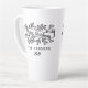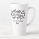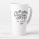 Feliz Natal Rustic Ribbon Family Name Latte Mug. Design preto e branco com um roteiro de Feliz Natal em uma fita rústica com folhagem. Excelente como presente de Natal da família. Adicione seu nome de família e ano.