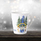 Esta caneca de café de Natal divertida tem um gnomo engraçado segurando uma faixa de ouro com texto verde que diz "Feliz Feriados!" Ele está vestido de azul, com uma campainha de ouro na ponta do chapéu. Atrás dele estão os pinheiros cobertos de neve, e um pequeno pássaro percorre no final da sua longa barba branca. A imagem é impressa em dois lados, e seu texto personalizado está em azul correspondente no centro entre as imagens.