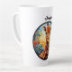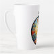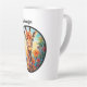 A caneca na moda latte apresenta uma girafa redonda gerada por IA e um retrato floral em vidro colorido. Personalizar com nome ou monograma