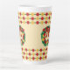 Classic holiday comfort in a timeless knit-look pattern of green Christmas trees and red Cream-colored knit-look design with a central holiday wreath, bright red bow, and garland borders. A vintage-cozy favorite.