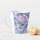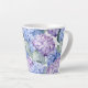 Esta caneca de latte cerâmica é mostrada com um adorável impressão floral de hydrangea multicolor. Personalize este item ou comprar como está. Imagem licenciada