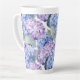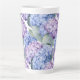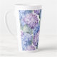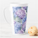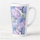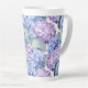 Esta caneca de latte cerâmica é mostrada com um adorável impressão floral de hydrangea multicolor. Personalize este item ou comprar como está. Imagem licenciada