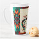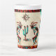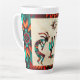 Este é um "Um dos tipos" único do sudoeste de Kokopelli Latte Mug! Ele apresenta dois Kokopelli sudoeste em Turquoise, laranja e preto tocando flauta e dançando em torno de um cacto debaixo do sol! Design De Arte Original Pelo Artista Kerry Miller.