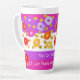 Engraçado caneca latte do escritório, personalize o texto que é a caneca da Julia, se perdida, por favor lave e volte. O fundo roxo pode ser comutado para qualquer cor, junto com as listras cor-de-rosa com no design. As cores são o ouro amarelo, o rosa, o laranja, o mauve e o verde-oliva.