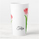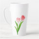 Esta caneca latta mostra uma linda tulipa rosa com impressão de gotas de água. Cor Branco Personalize este item ou comprar como está. Impressão de ações freepik.com